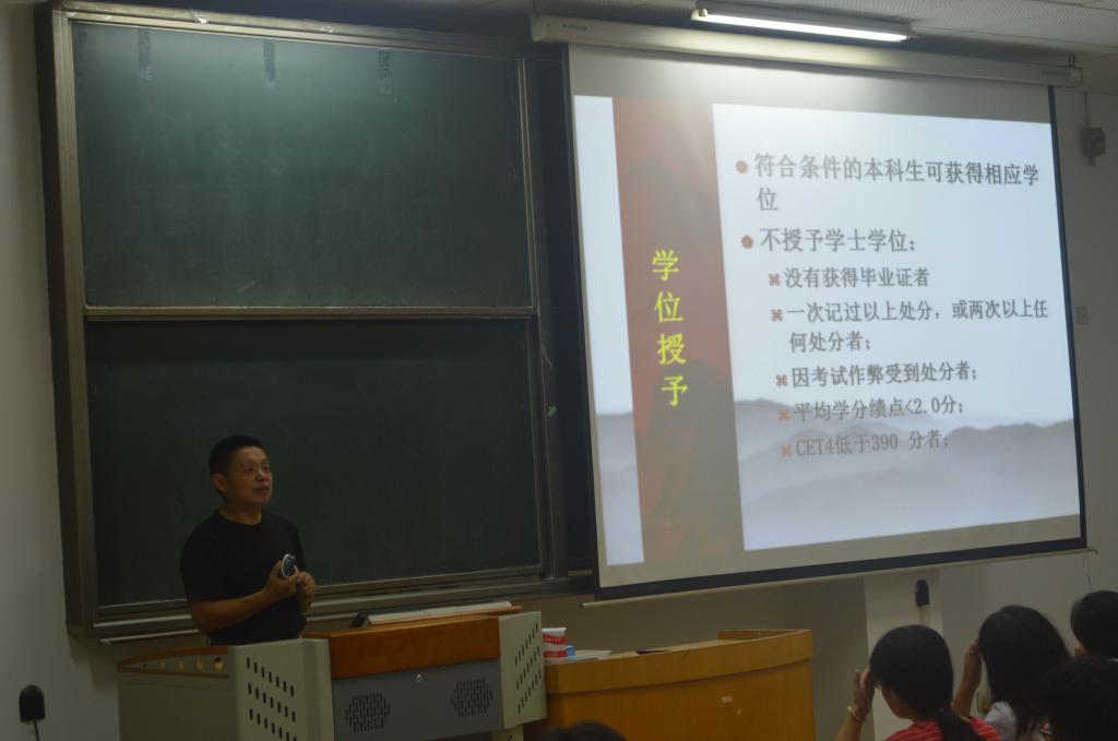 9月2日晚,邀请教务处薛卫京老师就学籍管理相关内容做了专题辅导,2019级全体新生参加。薛卫京老师向新生们展示了“教育在线”等相关网络主页的登录途径与使用方式。同时,薛老师还讲解了学籍确认、学分制度、员工选课制度、成绩查询、考试纪律、转专业政策和毕业所需条件等问题,使新生对学籍管理制度有了清晰的认识和了解。