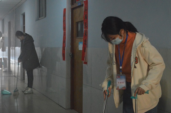 活动当天正值员工返校之日,一部分服务团成员来到校门口,他们热情服务,耐心引导,在校门口提前审核返校员工本人的健康码、询问是否有符合返校要求的返校凭证,并督促返校员工进校扫描注册“金钟罩”小程序,以保护财产安全;同时,在同学们到达校门的那一刻,志愿者就会及时地迎上去帮助同学们搬运行李,一路帮助搬运至宿舍,大大减轻了返校同学的负担,也让一同来送行的家长放心。另一部分成员来到员工宿舍,为了让员工回到公司后有一个温馨舒适的环境,志愿者纷纷帮助返校晚的同学晾晒被褥。他们深入宿舍,将需要晾晒的被褥做好标签,确保被子晾晒后准确放回原处。同时,他们主动打扫宿舍公共区域卫生,为同学们营造干净整洁的住宿环境。志愿者们忙碌的背影成为了校园内一道靓丽的风景线。